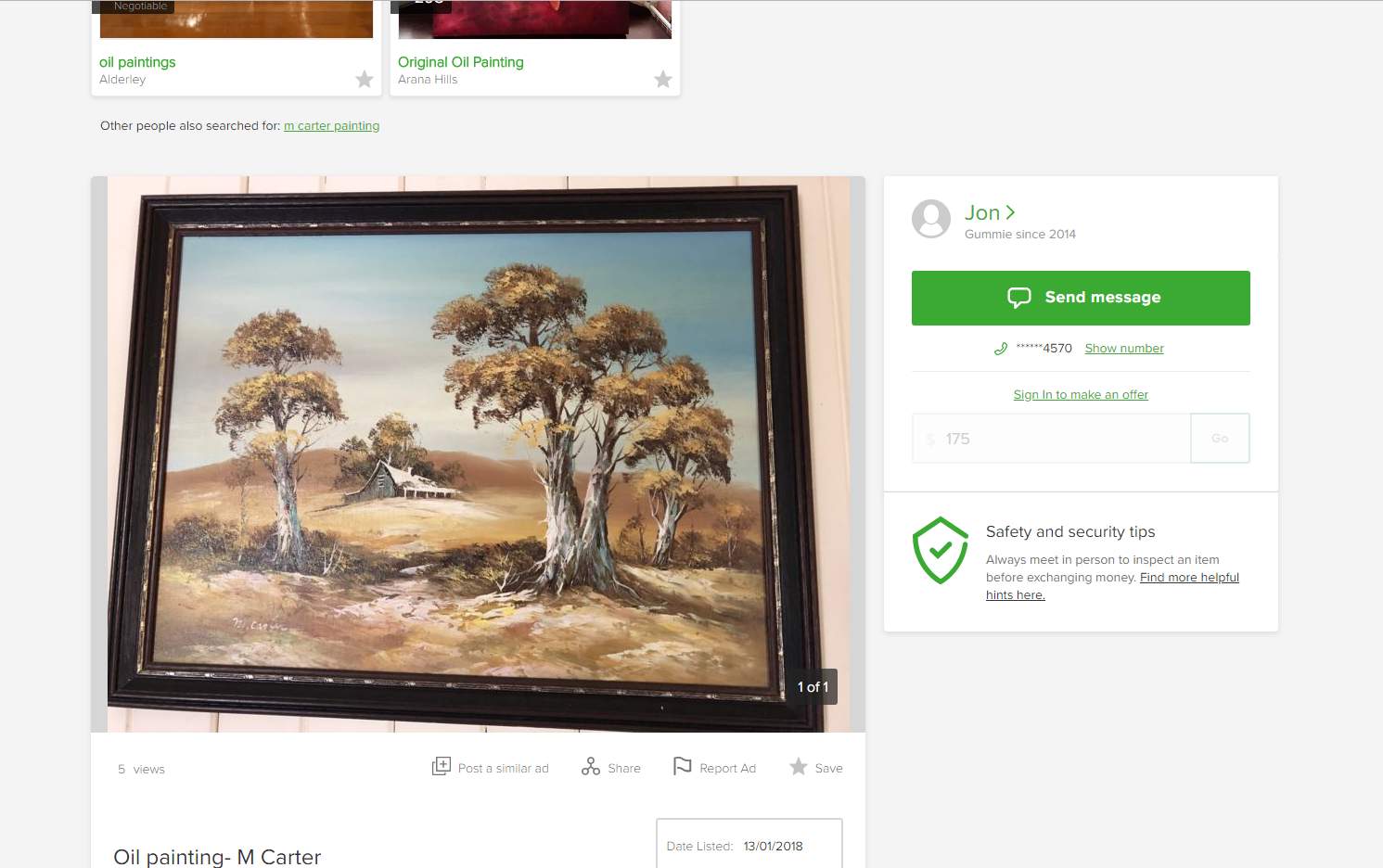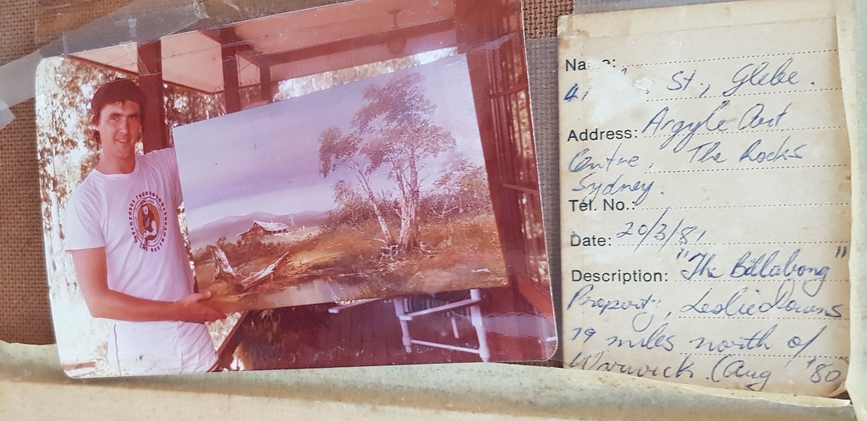 Early life of M. Carter, M. Carter with his oil painting when he is an art school student, Brisbane, Australia, 1981. |